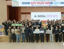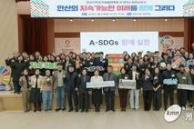(케이엠뉴스) 안산시는 지난 27일 시민과 함께 지속 가능한 미래로 나아가자는 의미를 담은 ‘안산시 지속가능발전 비전 선포식’을 개최했다고 28일 밝혔다. 이번 행사는 환경·경제·사회·거버넌스 전 분야를 아우르는 안산형 지속가능발전 체계(A-SDGs)를 공식 선포하고, 지속 가능한 도시로 나아가기 위한 공동의 실천 의지를 다지기 위해 마련됐다. 안산시 지속가능발전협의회가 주최한 이번 행사에는 이민근 시장을 비롯해 지속가능발전협의회 대표회장, 관련기관·단체 관계자 등이 참석했다. 참석자들은 비전 선언문 낭독과 퍼포먼스를 통해 안산형 지속가능발전 비전에 공감하며 실천 의지를 다졌다. 특히 이번 비전 선포식은 안산시와 시민, 관계기관이 함께 참여해 시민의 삶과 직결된 환경 개선과 사회적 가치 실현을 논의하고, 안산시 도시 특성을 반영한 중·장기 발전 방향을 공유하는 기회라는 점에서 의미가 깊다. 이민근 안산시장은 “지속가능발전은 행정의 노력만으로는 완성될 수 없으며, 시민과 지역사회가 함께할 때 비로소 실현가능한 과제”라고 강조했다. 이 시장은 이어 “선포된 비전이 선언에 그치지 않고 구체적
