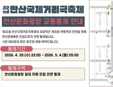 (케이엠뉴스) 안산시는 제22회 안산국제거리극축제 개최에 따라 4월 29일 오후 10시부터 5월 4일 오전 5시까지 안산문화광장 진입도로를 전면 통제한다고 15일 밝혔다. 통제구간은 안산문화광장 골든빌 사거리부터 레이크타운 사거리까지 광덕대로 양방향 1km 구간으로, 안산문화광장으로 연결되는 모든 골목길도 함께 통제된다. 해당 기간 차량과 자전거, 이륜차, 전동킥보드 등 바퀴 달린 이동 수단은 진입할 수 없다. 또 안산문화광장을 통과하는 모든 시내버스도 우회 운행할 예정이다. 시는 특히 4월 30일 출퇴근 시간대 교통 혼잡이 예상되는 만큼 차량 이용자는 우회도로를 이용해 달라고 당부했다. 아울러 인근 주민과 상가 상인, 이용객, 배달 종사자 등의 적극적인 협조도 요청했다. 이민근 안산시장은 “대규모 국제거리극축제 개최에 따라 교통 통제가 불가피한 만큼 시민 여러분의 이해와 협조를 당부드린다”며 “안전하고 즐거운 축제 운영을 위해 최선을 다하겠다”고 말했다. 한편, ‘제22회 안산국제거리극축제’는 5월 1일부터 3일까지 3일간 안산문화광장 일원에서 진행된다.
