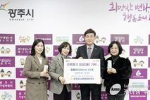 (케이엠뉴스) 광주청소년희망네트워크 김옥숙 대표는 지난 4일 광주시 드림스타트 초등학교 입학생을 대상으로 텀블러 21개(60만 원 상당)를 지정 기탁했다. 광주청소년희망네트워크는 인터넷 포털 네이버 카페 ‘경기광주맘스토리’ 회원들의 뜻을 모아 설립된 비영리 단체로, 지역 내 취약계층 아동을 위한 체계적인 나눔 활동을 추진하고 있다. 이번 기탁은 드림스타트 대상 초등학교 입학생의 새출발을 지원하기 위해 마련됐다. 김옥숙 대표는 “이번 기탁을 통해 드림스타트 초등학교 입학 아동의 힘찬 시작을 응원하며 취약계층 아동에 대한 나눔 활동을 드림스타트와 함께 할 수 있어 매우 기쁘게 생각한다”고 말했다. 이에 대해 방세환 시장은 “취약계층 아동에게 희망을 선물하는 지역사회의 따뜻한 관심에 감사드린다”며 “앞으로도 아동이 건강하고 행복하게 성장할 수 있도록 민관 협력의 아동복지 서비스를 지속적으로 발굴·지원하겠다”고 밝혔다. 한편, 광주시 드림스타트는 12세 이하 취약계층 아동을 대상으로 건강한 성장과 공평한 출발 기회를 보장하기 위해 맞춤형 아동 통합복지 서비스를 제공하고 있다.
