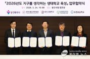 (케이엠뉴스) 용인특례시는 24일 시청 접견실에서 용인교육지원청을 비롯해 3개 학교와 ‘지구를 생각하는 생태학교 육성사업’을 위한 협약을 맺었다. 이날 협약식에는 조영민 교육장과 올해 생태학교로 선정된 대지고 유동철 교장, 효자초 정계환 교장, 도현초 연승희 교장, 담당 교사들이 참석했다. 이들 기관은 협약에 따라 ▲학교별 맞춤형 생태교육 운영 지원 ▲교과·교육과정과 연계한 생태교육 프로그램 개발·자문 ▲생태학교 육성사업 성과평가 등을 위해 협력하기로 했다. 올해 4년 차를 맞이한 ‘지구를 생각하는 생태학교’ 사업은 전국 지자체 중 최초로 환경교육 전문 인력을 학교 현장에 배치, 이론 교육을 넘어 실천 중심의 생태전환교육을 하는 용인시의 핵심 환경교육 사업이다. 시는 2023년부터 해마다 공모를 통해 지역 내 학교를 선정해 왔다. 올해 선정된 3개 학교를 포함해 총 12개교가 생태학교 사업에 참여하고 있다. 올해 기준 용인 지역은 초·중·고 343학급, 학생 9149명이 생태교육에 참여하면서 현장 중심의 체계적인 환경교육으로 높은 평가를 받고 있다. 시는 축적된 노하우를 바