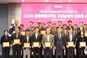 (케이엠뉴스) 강원특별자치도는 3월 27일, 춘천 스카이컨벤션웨딩홀에서 '2026년 지방세 유공납세자 인증패 수여식'을 개최하고, 어려운 경제 여건 속에서도 납세의무를 성실히 이행해 지역발전에 기여한 유공납세자에게 감사의 뜻을 전했다. 이번 수여식은 '강원특별자치도 성실납세자 등 선정 및 지원에 관한 조례'에 따라 성숙한 납세 문화를 확산시키고, 성실납세자가 사회적으로 존경받는 분위기를 조성하기 위해 마련됐다. 올해 선정된 유공납세자는 최근 5년간 지방세를 체납 없이 매년 3건 이상 기한 내에 납부한 성실납세자 중에서 도 재정 확충과 지역발전에 기여한 개인 1명과 법인 29개 등 총 30명이 선정됐다. 도는 시군으로부터 추천받은 후보자를 대상으로 엄격한 심사를 거쳐 최종 대상자를 확정했다. 특히 올해는 고용 창출 및 지역사회 공헌도가 높은 기업들이 다수 포함돼 지역 경제 활성화에 기여한 공로를 높게 평가받았다. 이날 수여식에 참석한 김진태 강원특별자치도지사는 “여러분이 열심히 뛰어주신 덕분에 작년 강원도 지방세 징수액이 사상 처음으로 2조 원을 돌파했다”며, “국비 10조 원 확보와