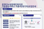 (케이엠뉴스) 파주시 운정다누림장애인복지관은 지역 내 장애인의 기능 향상과 일상생활 능력 증진을 위해 ‘기능향상서비스’참여자를 오는 23일부터 상시 모집한다. 모집 대상은 주민등록등본상 파주시에 거주하는 장애인으로, 서비스 영역별 특성에 따라 대상이 구분된다. 운동기능향상, 로봇재활, 작업기능향상 서비스는 모든 연령의 뇌병변·지체·발달장애인을 대상으로 하며, 감각통합기능향상은 2세부터 12세 아동, 언어기능 향상은 2세부터 학령기 중학생까지 신청할 수 있다. 기능향상서비스는 영역별 전문 재활 프로그램으로 구성되어 이용자의 특성과 욕구를 반영한 맞춤형 서비스를 제공한다. 주요 내용으로는 ▲운동기능향상(운동발달능력 향상 및 기능적 움직임 훈련) ▲로봇재활(보행기능 회복을 위한 맞춤형 보행훈련) ▲작업기능향상(일상생활활동 및 인지·상지 기능 훈련) ▲감각통합기능향상(감각조직화 및 적응반응 촉진) ▲언어기능향상(장애특성 및 주된 불편 증상을 고려한 의사소통 능력 향상) 등이 있다. 이용은 주 2회(회당 30분) 기준이며, 회당 9,000원~12,000원으로 서비스별 상이하다. 로봇재활은 6개월(최대 1년), 그 외 서