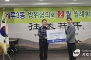 (케이엠뉴스) 수원시 권선구 세류3동 방위협의회는 지난 12일, 세류3동행정복지센터를 방문해 불우이웃 돕기 후원금 50만 원을 기탁했다. 이번 후원금은 지역 내 취약계층 및 복지사각지대 가구 지원을 위해 사용될 예정이며, 세류3동행정복지센터는 대상자 발굴 및 맞춤형 복지서비스 연계 등을 통해 실질적인 도움이 될 수 있도록 집행할 계획이다. 방위협의회 회장은 “우리 주변에는 작은 도움에도 다시 힘을 낼 수 있는 이웃들이 있다”며 “이번 후원이 따뜻한 위로가 되길 바라며, 앞으로도 지역과 함께하는 나눔 활동을 꾸준히 이어가겠다”라고 말했다. 이진영 세류3동장은 “어려운 시기에 이웃을 먼저 생각해 주신 방위협의회에 깊이 감사드린다”며 “기탁해 주신 성금은 취약계층 지원을 위해 투명하고 세심하게 집행하겠다”라고 전했다. 한편 세류3동행정복지센터는 지역 내 복지자원과 연계한 지원체계를 바탕으로, 복지사각지대 해소를 위한 상담·발굴 활동을 지속 추진하고 있으며, 주민이 체감할 수 있는 촘촘한 복지안전망 구축에 힘쓰고 있다.