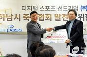 (케이엠뉴스) 디지털 스포츠 솔루션 선도기업 ㈜에어패스가 하남시 체육 발전의 근간을 마련하고 지역사회와의 실질적인 상생을 실천하기 위해 하남시 축구협회에 후원기금을 전달했다고 밝혔다. ㈜에어패스는 지난 10일 진행된 후원기금 전달식을 통해 하남시 축구협회에 성금을 기탁하며 지역 체육계에 활력을 불어넣었다. 이번 후원은 단순한 일회성 지원을 넘어, 하남시 축구 동호인들의 활동 저변을 넓히고 미래의 주역인 유소년 축구 꿈나무들이 보다 안정적인 환경에서 훈련에 매진할 수 있는 육성 토대를 조성하기 위해 마련됐다. ㈜에어패스와 하남시 축구협회는 이번 전달식을 기점으로 지역 내 축구 문화 확산과 체육 인프라 강화를 위한 다각적인 협업 체계를 구축하고, 긴밀한 파트너십을 이어가기로 약속했다. 이날 행사에는 이현재 하남시장을 비롯하여 하남시 축구협회 주요 관계자들이 대거 참석해 자리를 빛냈다. 참석자들은 지역 체육 발전을 위한 민관 협력의 중요성에 깊이 공감하며, 기업의 사회적 책임 활동이 지역 공동체 활성화에 미치는 긍정적인 의미를 다시 한번 되새겼다. 임종호 ㈜에어패스 대표이사는 이 자리에서 “㈜에어패스의