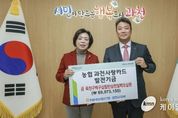 (케이엠뉴스) 과천시는 19일 NH농협은행 과천시지부로부터 제휴카드 사용으로 적립된 기금 6천 9백여만 원을 전달받았다고 밝혔다. 이날 전달식은 과천시청 집무실에서 열렸으며, 신계용 과천시장과 이장순 NH농협은행 과천시지부장, 노준형 NH농협은행 과천시청 출장소장 등이 참석했다. 과천시는 NH농협은행과 협약을 맺고 법인카드, 보조금카드, 공무원 복지카드 등의 사용액 중 일정 비율(0.1~1.1%)을 포인트로 적립해 매년 기금으로 전달받고 있다. 이번 기금을 포함해 현재까지 과천시에 전달된 누적 기금은 약 8억 3천만 원에 이른다. 해당 재원은 시 세입으로 편성되어 공공서비스 확대와 복지사업 등 시민 삶의 질 향상과 지역 발전을 위한 사업에 활용되고 있다. 시 관계자는 “지역사회 발전을 위해 매년 기금을 전달해 준 NH농협은행 과천시지부에 감사드린다”라며 적립된 기금은 “시민이 체감할 수 있는 정책과 지속가능한 도시 발전을 위한 다양한 시정 사업에 소중히 활용하겠다”라고 말했다.
