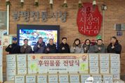 (케이엠뉴스) 광명시장상점가진흥사업협동조합이 설 명절을 앞둔 지난 9일 관내 소외된 이웃을 위한 ‘설맞이 이웃사랑 떡만둣국 세트 나눔 행사’를 개최했다. 이번 나눔은 지난해 12월 시장 내 고객 쉼터에 설치된 크리스마스트리에 후원 금액과 이름을 적은 엽서를 부착하는 ‘나눔 엽서 달기’ 캠페인으로 마련했다. 경기 침체로 어려운 여건 속에서도 시장 상인 63개 점포가 자발적으로 동참하여 총 550만 원의 성금을 모았다. 광명전통시장은 모금액 중 일부를 광명희망나기운동본부에 지정 기탁해 복지 사각지대 지원에 앞장서는 한편, 정성껏 준비한 ‘떡만둣국 선물 세트’ 130박스를 제작해 따뜻한 온정을 나누었다. 준비된 선물 세트는 지역 내 촘촘한 복지망을 통해 골고루 전달했다. ▲광명전통시장 여성회 봉사 대상 어르신 30가구를 시작으로 ▲광명3동 행정복지센터(30박스) ▲광명종합사회복지관(30박스)에 전달했으며, 미래 세대인 아이들을 위해 ▲광명다솜지역아동센터와 ▲어벤저스지역아동센터에도 전해졌다. 광명전통시장의 나눔은 지난 2018년 여성회가 홀몸 어르신 등 125가구에 생필품을 전달하며 시작돼 단
