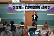 (케이엠뉴스) 강원특별자치도는 2월 24일 화천군청 4층 대회의실에서 화천군 공무원을 대상으로 ‘찾아가는 강원특별법 설명회’를 개최했다. 이번 설명회는 지난 1월 고성군청에 이어 두 번째로 열린 현장 방문 설명회로, 강원특별법 제정 이후 추진 경과와 주요 특례 내용을 공유하고 시군 현장에서 실제 활용 방안을 모색하기 위해 마련됐다. 이날 설명회에서는 강원특별법 제정 및 1·2차 개정 연혁과 함께 현재 시행 중인 핵심 특례가 구체적으로 소개됐다. 특히 접경지역인 화천군과 밀접한 군사 규제 특례를 중심으로 실제 활용 사례와 성과를 설명해 참석 공무원들의 높은 관심을 받았다. 아울러 농지 특례인 ‘농촌활력촉진지구 제도’의 도입 배경과 지정 절차, 기대 효과도 상세히 안내됐다. 해당 제도는 도지사가 직접 농촌활력촉진지구를 지정하고 농업진흥지역(구(舊) 절대농지)을 해제할 수 있도록 한 것으로, 농지 활용의 자율성을 확대하고 지역 개발의 물꼬를 트는 제도로 평가받고 있다. 도는 제도의 안정적 정착을 위해 시군의 적극적인 참여와 협력이 필요하다고 강조했다. 군사 분야에서