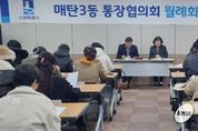 (케이엠뉴스) 수원시 영통구 매탄3동은 지난 24일 시정 및 동정 소식 공유를 위한 2월 통장협의회 월례회의를 개최했다. 이날 회의에서는 '새빛 생활비 패키지' 사업 중 하나인 △여성 청소년 생리용품 보편 지원 사업을 비롯하여 △초등 저학년 등하교 동행 돌봄 서비스, △어르신 스포츠상품권 지급 사업 등 시민 홍보가 필요한 주요 사업들을 공유했다. 아울러 ‘제9회 전국동시지방선거’를 대비해 통장의 선거운동 금지와 정치적 중립 의무 등 '공직선거법' 관련 유의 사항을 공유하고 준수를 당부했다. 김병목 매탄3동장은 “주민과 가장 가까운 곳에서 소통해주시는 통장님들의 노고에 감사드린다”며 “앞으로도 통장협의회와의 긴밀한 협력체계를 유지하여 살기 좋은 매탄3동 조성을 위해 노력하겠다”고 말했다.