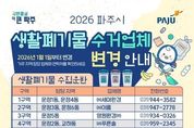 (케이엠뉴스) 파주시는 2026년 1월 1일부터 관내 생활폐기물(쓰레기) 수집·운반 대행업체가 변경됨에 따라, 시민에게 정확한 정보를 안내하고 현장 운영이 원활히 정착될 수 있도록 홍보와 안내를 강화하고 있다고 밝혔다. 이번 대행업체 변경으로 지역별 담당 업체가 달라졌으며, 특히 문산읍의 경우 세부 지역(리 단위)에 따라 담당 업체가 서로 다를 수 있어 시민들의 각별한 주의가 필요하다. 변경된 담당 업체 정보는 파주시청 누리집에서 확인하거나, 자원순환과 청소행정팀 및 민원전화상담실(콜센터)로 문의하면 안내받을 수 있다. 파주시는 시민 혼선을 최소화하기 위해 변경 사항을 지속적으로 홍보하는 한편, 대행업체와 협력해 현장 안내를 강화하고 주민 문의에 신속히 대응해 나갈 계획이다. 심재우 자원순환과장은 “대행업체 변경 초기에는 일시적인 혼선이 발생할 수 있다”라며 “현장 점검을 강화해 수거 지연 등 문제를 신속히 해소하고 청소 행정이 조기에 안정될 수 있도록 노력하겠다”라고 밝혔다.