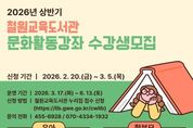 (케이엠뉴스) 철원교육도서관은 3월 17일부터 6월 13일까지 지역주민의 문화 향유 기회 확대를 위한 상반기 문화활동 강좌를 운영한다. 이번 강좌는 유아, 학생, 학부모 및 시니어를 대상으로 총 7개 강좌를 운영하며, 본관 1~3교육실과 연계기관인 드림스타트 및 희망지역아동센터에서 진행한다. 유아 대상 강좌는 다양한 미술 재료를 활용한 기초 표현 활동 △플레이 아트와 그림책을 활용한 독서 및 의사소통 활동 △신나는 그림책 여행을 운영한다. 학생 대상 강좌는 세계 요리를 통해 다양한 문화를 이해하는 △흑백요리사와 자연 속 식물을 주제로 한 체험 관찰 활동 △파브르 식물기로 구성됐다. 학부모 대상 강좌는 일상과 여행에서 활용 가능한 생활 영어회화를 배우는 △모두의 영어와 풍경을 관찰하며 선과 형태로 표현하는 △오늘은 어반스케치를 운영한다. 또한 시니어를 위한 △브라보 시니어 라이프를 통해 신체 활동과 레크리에이션을 활용한 인지 활성화 프로그램을 진행한다. 도서관은 이번 프로그램을 통해 세대별 맞춤형 문화·체험 활동을 제공하고, 지역사회와 연계한 평생학습 기반을 강화하고자 한다.