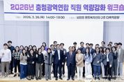 (케이엠뉴스) 충청광역연합이 4개 시·도(대전·세종·충북·충남) 파견 직원들의 정책 이해도를 높이고 조직 결속력을 다지기 위한 본격적인 역량 강화 행보에 나섰다. 충청광역연합은 3월 26일 보람동 행복누림터에서 전 직원을 대상으로 ‘2026년 충청광역연합 직원 역량강화 워크숍’을 개최했다고 밝혔다. 이번 워크숍은 연합 직원들이 연합의 설립 취지와 주요 정책을 빠르게 숙지하고 향후 충청권 행정환경 변화에 능동적으로 대응할 수 있도록 마련됐다. 이날 워크숍에서는 최민호 충청광역연합장이 직접 강사로 나서 ‘행정환경에 따른 연합의 역할’을 주제로 특강을 진행했다. 최 연합장은 특강을 통해 초광역 협력체의 필요성을 강조하며, 충청권의 공동 번영을 위한 직원들의 사명감과 역할을 당부했다. 특히, 현대의 시대정신이 ‘에너지 확보, 기술 인력 양성, 기업 우호적 환경 조성, 물관리’임을 강조하며, 시대정신을 반영한 정책을 구상하고 추진하는 것이 공직자에게 필요한 자세라고 힘주어 말했다. 이어지는 강의에서는 대전연구원 염인섭 책임연구위원이 ‘연합의 출범 배경 및 역사, 주요 정책’을 주제