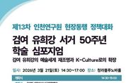 (케이엠뉴스) 인천연구원은 2026년 3월 21일 오후 2시 30분, 청라블루노바홀에서 “검여 유희강의 예술세계 재조명과 K-Culture로의 확장”을 주제로 '제13차 현장동행 정책대화'를 개최한다. 인천연구원이 2026년부터 본격 시행 중인 ‘현장동행 정책대화’의 일환으로 마련된 이번 행사는 검여 유희강 서거 50주년을 기념해 인천서구문화재단과 공동주관으로 개최되며, 그의 예술세계와 정신을 재조명하고 K-Culture로의 확장 가능성을 모색하는 학술 심포지엄으로 진행될 예정이다. 이날 개회식에서는 김성하 인천서구문화재단 대표이사가 개회사를, 강범석 인천광역시 서구청장과 최계운 인천연구원장이 축사를 맡는다. 이어 진행되는 첫 번째 발표에서는 박재복 경동대학교 국제융합학부 교수가 “검여 유희강의 위상 재정립과 예술정신 계승”을, 두 번째 발표에서는 안현정 성균관대학교 박물관 학예실장이 “검여 예술의 현대적 해석과 공공문화·동시대 활용 가능성 확장 논의”를 주제로 발표한다. 종합토론 사회는 전 경기도박물관 관장인 이동국 독립큐레이터가 맡으며, 토론에는 김창수 인하대학교 초빙교수, 최영화 인천연구원