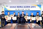 (케이엠뉴스) 파주시는 지난 29일 '2025년도 개인택시 신규면허 교부식’을 개최했다고 밝혔다. 이날 교부식에는 파주시 개인택시조합장, 개인택시조합 임원 등이 참석해 신규면허자 5명에게 면허를 수여했다. 시는 지난 9월, 증차분 2대와 기존 면허 감차분 3대를 포함한 총 5대에 대해 개인택시 신규면허자 신청 공고를 실시했다. 공고를 통해 접수된 14명을 대상으로 운전 자격, 무사고 기간, 운전 경력 현지 확인 등 엄격한 심사를 거쳐 최종 5명을 신규면허자로 선정했다. 그동안 파주시는 택시 승차난을 해소하기 위해 지속적으로 증차 방안을 모색해 왔다. 국토교통부의 ‘제5차 택시총량제 지침(2025~2029)’시행에 따라 감차가 우려되는 상황에서 자율조정협의회를 통해 최대 증차 비율 10%를 확보하고, 경기도 택시감차위원회에서 증차가 심의·의결됨에 따라 감차 지역에서 증차 지역으로 전환돼 2대 증차에 성공했다. 이에 따라 기존 826대였던 파주시 택시 대수는 2대가 늘어나 총 828대의 택시가 파주시 전역에서 운행하게 됐다. 김경일 파주시장은 “개인택시는 시민들의 일상 이동을 책임지는 중요한 교통수단”
