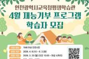 (케이엠뉴스) 인천광역시교육청평생학습관은 오는 3월 23일부터 시민 강사의 전문 지식과 경험을 지역 주민과 공유하는 ‘4월 재능기부 프로그램’ 학습자를 모집한다. 이번 프로그램은 시민이 직접 강사로 나서 지역사회와 함께 전문성을 나누는 참여형 평생학습 과정으로, 4월 운영 강좌는 ‘쏙쏙 클래식’, ‘치매예방 힐링 퍼즐’, ‘한중 지명에 얽힌 역사문화와 지혜’, ‘요들송 배우기’ 등 4개 과정을 마련했다. 강좌는 4월 8일부터 운영되며, 수강 신청은 23일 오전 10시부터 평생학습관 누리집에서 선착순 진행된다. 자세한 사항은 누리집 공지사항을 확인하거나 평생교육부로 문의하면 된다.