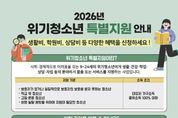 (케이엠뉴스) 동두천시는 2026년 ‘위기청소년 특별지원’과 관련해 사회·경제적으로 어려움을 겪는 관내 위기청소년들에게 다양한 혜택을 제공하기 위한 신청을 3월 30(월)까지 받는다고 밝혔다. 지원 대상자는 9세 이상 24세 이하의 위기청소년(은둔청소년, 저소득 한부모 가족 자녀 등)으로 생활, 건강, 학업, 자립, 상담, 법률 지원 등 다양한 혜택을 받을 수 있다. 신청은 청소년 본인, 보호자, 청소년지도자, 교원, 사회복지사, 청소년 담당 공무원 등이 청소년이 거주하고 있는 행정복지센터에서 할 수 있다. 선정 기준은 소득 기준 중위소득 100% 이하이며, 지자체 ‘청소년복지심의위원회의’ 심의를 통해 적합 대상자 및 지원 금액, 기간 등이 결정된다. 시 관계자는 “모든 위기 청소년들에게 도움이 됐으면 좋겠지만, '국민기초생활 보장법','긴급복지지원법','의료급여법','사회복지사업법' 등에 따라 이미 지원을 받고 있는 경우 동일 내용의 중복 지원은 불가하다”라고 말했다.