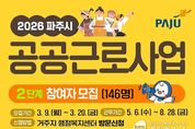 (케이엠뉴스) 파주시가 오는 20일까지 2026년 2단계 공공근로사업 참여자 146명을 모집한다. 공공근로사업은 청년, 여성, 중장년 등 취업 취약계층에게 한시적인 일자리를 제공하고, 장기 실직자에게 재취업 도전의 발판을 마련하는 데에 목적이 있다. 근무 분야는 ▲공공서비스 ▲전산화 ▲환경정비 등 3가지 분야 총 141개 사업이다. 참여 자격은 ▲사업개시일 기준 18세 이상 ▲가구소득이 기준중위소득 70% 이하 ▲재산 4억 원 이하에 속하는 파주시민이며, 파주시 등록 외국인도 신청할 수 있다. 참여 희망자는 모집 기간 내 거주지 행정복지센터를 방문해 신청서와 구비서류를 제출해야 하며, 선발 여부는 4월 말 개별 통보될 예정이다. 선발된 인원들은 다가오는 5월 6일부터 8월 28일까지 근무하게 되며, 주요 근무조건은 ▲시간당 임금 1만 2,070원 지급 ▲4대보험 가입 ▲주휴수당 및 연차 유급휴일 제공 등이 있다. 이이구 민생경제과장은 “최근 고유가·고환율로 위기에 처한 시민들의 가계에 보탬이 되고 민생경제 활성화에 기여하길 기대한다”라고 밝혔다.