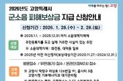 (케이엠뉴스) 고양특례시는 오는 28일부터 2월 28일까지 군 소음대책지역에 대한‘2026년도 군소음 피해보상금 신청’을 받는다고 밝혔다. 군 피해보상금은 국방부에서 고시한 소음대책지역에 주민등록을 두고 실제 거주하는 주민들의 소음피해 보상을 위해 마련된 제도이다. 보상금지급 대상자 여부 조회는 국방부 군소음포털에서 확인할 수 있다. 올해 신청대상은 2025년 1월 1일부터 12월 31일까지 고양시 소음대책지역(화전동 및 대덕동 일부)에 주민등록을 두고 실제 거주한 사실이 있는 주민(외국인 포함)이다. 2025년도 이전 미신청자도 소급해 신청(보상대상기간:2020.11.27.~2024.12.31.) 할 수 있다. 단, 중복신청은 불가하다. 신청은 고양시 누리집 고시·공고 게시판에서 신청서와 구비서류 등을 확인해 시청 방문 또는 우편으로 제출하거나 정부24를 통해 온라인으로 하면 된다. 보상금은 오는 5월 심사를 거쳐 실제 거주기간, 전입시기, 근무지(사업장) 거리 등에 따라 감액 조정돼 8월중 최종 지급될 예정이다. 시 관계자는“소음대책지역 인근 주민들이 많은 관심을 갖고