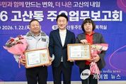 (케이엠뉴스) 의정부시 고산동주민센터는 1월 22일 주민센터 2층 다목적실에서 ‘2026년 주요업무보고회’를 개최했다. 이번 보고회는 ‘주민과 함께 만드는 변화, 더 나은 고산의 내일’을 주제로 지역 주민과 내빈 등 100여 명이 참석한 가운데 2025년 추진 경과 및 2026년 중점 추진 사업을 주민과 함께 공유하기 위해 마련됐다. 행사는 주민자치센터 수강생의 식전공연을 시작으로 ▲새해 인사 및 덕담 ▲지역발전 유공자 표창장 수여 ▲주요 업무 보고 ▲주민과의 대화 순으로 진행됐다. 고산동장은 주요업무 보고를 통해 ▲고산동 신설 ▲물류센터 부지 공공주택 공급 전환 ▲대형유통시설 입접 관련 협약 ▲아이돌봄시설 클러스터 시범사업 ▲학생 통학버스, 똑버스 등 대중교통 개선 및 나눔주차장 조성을 통한 교통환경 개선 등 생활밀착형 사업의 추진 경과를 공유했다. 또, ▲디자인도서관 조성 ▲민락TG 우회도로 개설 ▲법조타운 조성 ▲고산지구 제3공영주차장 조성 ▲주민커뮤니티 공간 조성 ▲민관협력, 모두가 돌보는 온(on)마을 공동체 사업 등 2026년 진행 예정인 핵심 사업을 설명하며 주민과 함께 고산동의 미래가