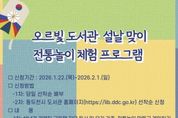 (케이엠뉴스) 동두천시 도서문화사업소는 설날을 맞아 오르빛도서관에서 유아를 동반한 가족과 저연령 청소년을 대상으로 ‘설날 맞이 전통놀이 체험 프로그램’을 2월 4일 운영한다. 프로그램 참여 신청은 동두천시 도서관 홈페이지를 통해 선착순으로 접수하며, 신청 기간은 1월 22일부터 2월 1일까지다. 이번 프로그램은 가족이 함께 참여하며 세대 간 소통의 폭을 넓히고, 설 명절의 의미와 전통문화를 자연스럽게 체험할 수 있도록 기획됐다. 설날 관련 그림책 자유독서를 비롯해 만들기 키트를 활용한 윷놀이와 통통놀이 제작 및 게임 체험, 전통놀이 선생님과 함께하는 투호 등 체험 중심의 다채로운 프로그램으로 운영될 예정이다. 동두천시 도서문화사업소장은 “민족 최대의 명절인 설날을 맞아 어린이와 청소년이 전통문화를 놀이로 즐길 수 있도록 프로그램을 마련했다”라며 “가족이 함께 참여해 뜻깊은 명절 추억을 만들길 기대한다”라고 말했다. 프로그램과 관련한 자세한 사항은 동두천시 도서관 홈페이지에서 확인할 수 있다.