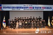 (케이엠뉴스) 김포시가 지난 11월 5일 통진두레문화센터에서 2024학년 김포시엘리트농업대학 졸업식을 개최했다고 밝혔다. 4월 16일 3개 학과(스마트농업과, 융복합농업과, 작물재배과) 112명의 신입생이 입학하며 시작된 2024년도 김포시엘리트농업대학의 1년간의 대장정이 이날 94명의 졸업생을 배출하며 마무리됐다. 김포시엘리트농업대학은 2007년 1회로 3개 학과 120명의 신입생 모집을 시작으로, 농업기술 활용능력을 갖춘 선진농업 인재양성 및 핵심기술교육을 통한 새로운 소득원 창출 및 비전 제시를 목표로 하며 현재까지 17회에 걸쳐 총 2천 8백여 명의 졸업생을 배출했다. 식전행사로 지난 1년간의 여정을 담은 기념영상 시청, 졸업생 및 재학생으로 구성된 엘리트농업대학 합창단 축하공연, 졸업생의 기타연주 공연이 이어졌고 졸업장 수여, 성적 우수자 및 공로자에 대한 표창과 축사, 그리고 학과별 기념사진 촬영의 순으로 진행됐다. 특히 올해 행사에서는 총학생회에서 지도교수 및 담당 관계기관에 공로상을 수여하는 발상의 전환으로 훈훈한 분위기를 자아냈다. 김포시엘리트농업대학 학장인 김병수 김포시장은 축사를 통해 “엄