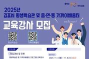 (케이엠뉴스) 김포시가 2025년 평생학습관 및 읍·면·동 가까이배움터(평생학습센터)에서는 시민들과 함께 평생학습을 펼쳐나갈 역량 있는 강사를 공개모집한다. 2025년 평생학습관에서는 세대별 수요에 맞는 맞춤형 특화 강좌를 신설했으며, 3040 직장인들을 위한 야간ㆍ주말 강좌를 시범 확대하여 운영할 계획이다. 모집규모는 총 69명으로 ▲직업능력(취·창업자격증), ▲기술·기능, ▲인문·교양, ▲문화·예술, ▲정보화, ▲제안강좌 분야로 이루어진 평생학습관 64개 정규강좌와 5개의 성인문해강좌 분야이다. 2025년 가까이배움터 교육강사 모집은 읍면동 가까이배움터 수강생 및 시민들의 설문조사를 통해 소통하면서 정규강좌 목록을 구성했고, ▲직업능력, ▲인문·교양, ▲문화·예술, ▲시민참여, ▲기초문해, ▲강좌제안 분야에서 총 241개 강좌의 교육강사를 선발할 계획이다. 교육강사 지원 자격은 해당분야 학사 이상의 학력 소지자 또는 관련 자격증 소지자, 2년 이상의 관련분야 강의 경력자이며 강좌별로 신청하되 평생학습관 및 읍·면·동별 2개 강좌, 1인당 최대 3개 강좌까지 지원할 수 있다. 강사모집