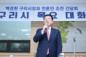 (케이엠뉴스) 백경현 구리시장은 21일 오전 구리시청 6층에서 11월 조찬 간담회를 열고 언론인들과 소통했다. 이날 간담회에서는 언론인들이 참석한 가운데, 구리시의 시정 운영 방향과 주요 시책 등 구리시가 향후 추진할 다양한 정책들과 사업들이 소개됐다. 백경현 시장은 인사말을 통해 “2024년 한 해 동안 구리 코스모스 축제, 동구릉 힐링 예술제 등 여러 가을 축제가 성황리에 마무리됐다. 언론인 여러분의 적극적인 관심 덕분에 많은 성과를 이룰 수 있었다.”며 언론인에게 감사를 표했다. 이어. 백 시장은 2025년을 향한 구리시의 주요 시책을 여섯가지 분야로 나누어 설명했다. △자족도시 건설의 기틀 마련 △사람중심의 광역교통 인프라 구축과 주차장 확충 △소상공인과 골목상권이 활력을 되찾는 살기 좋은 경제도시 구축 △포용적 복지 도시 건설 △품격높은 문화가 있는 건강한 행복도시 조성 △깨끗하고 안정적인 지속 가능한 친환경 도시 조성 등이다. 교통 현안과 관련해선 "교통인프라 확충은 시민들의 삶의 질 향상은 물론 우수한 인재와 기업 유치를 통해 지역경제 발전을 이끌어내는 도시 발전의 가장 중요한 핵심 요