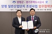 (케이엠뉴스) 양평군은 17일 경기주택도시공사와 ‘양평 일반산업단지 조성’을 위한 업무협약을 체결했다고 밝혔다. 협약식에는 전진선 양평군수, 김세용 경기주택도시공사, 신범수 양평공사 사장 등이 참석했으며, 이번 협약으로 양 기관은 상호 긴밀히 협력해 산업단지 개발이 전무한 양평군에 최초 산업단지 조성을 성공적으로 수행할 것을 약속했다. 또한, 양평군과 경기주택도시공사는 산업단지가 성공적으로 조성되도록 사업 시행에 필요한 행정적 지원과 기업 유치 및 산업 용지 실수요 확보, 기반시설 지원 등 지역 발전을 위해 적극 협력하기로 했다. 전진선 군수는 “양평군은 법적 규제가 많아 개발사업 추진에 어려움이 많으나, 이번 협약으로 산업단지가 성공적으로 조성되어 양평군 동부권역의 지역발전에 도움이 되길 바란다”고 전했다.