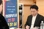 (케이엠뉴스) 김동근 의정부시장이 12월 27일 호원1동 주민센터에서 올해 마지막‘현장시장실’을 열고 시민들과 만나 소통하는 시간을 가졌다. 12월에는 동 순회 2회차로 호원1동 주민센터에서 현장시장실을 열어 시민들의 의견을 경청하고 불편사항이 있는지 살폈다. 이날 진행된 현장시장실에서는 ▲복지대상자 지원 문의 ▲다락원 소방도로 개설 ▲평화로15번길 일대 상습침수구역 정비 ▲호원1동 하천변 인근 계단 정비 등에 관한 이야기가 오갔다. 김동근 시장은 “올 한해도 현장 곳곳을 다니며 시민들과 만나 소통하고 불편한 부분을 해소하기 위해 노력을 해왔다”며, “내년에도 시 정책을 추진하는 데 있어 시민들과 지속적인 소통을 이어가며 시민들의 삶이 변화되는 행복한 도시가 될 수 있도록 최선을 다하겠다”고 말했다. 한편, 내년 첫 현장시장실은 1월 10일 신곡2동 주민센터에서 운영될 예정이다.