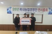 (케이엠뉴스) 여주시 북내면 후계농업경영인회는 지난 20일, 북내면 행정복지센터를 방문해 관내 어려운 이웃을 위한 이웃돕기 성금 100만 원을 전달했다. 이번 기탁은 회원들이 뜻을 모아 개최하는 연시총회를 앞두고, 지역사회의 소외된 이웃들이 따뜻한 새해를 맞이하기를 바라는 마음에서 진행됐다. 북내면 후계농업경영인회는 매년 잊지 않고 어려운 이웃을 위한 성금을 기탁하며 지역사회의 귀감이 되고 있다. 전달된 성금은 경기사회복지공동모금회를 통해 북내면 내 저소득층 및 복지 사각지대 가구를 지원하는 사업에 사용될 예정이다.
