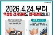 (케이엠뉴스) 남양주시는 담배사업법 개정에 따라 24일부터 합성니코틴 액상형 전자담배도 법적 담배에 포함돼 금연구역에서 흡연 시 10만 원 이하의 과태료가 부과된다고 밝혔다. 그동안 합성니코틴 액상형 전자담배는 법적 담배에 해당하지 않아 규제 사각지대에 놓여 있었다. 이번 개정으로 니코틴을 원료로 한 제품까지 담배에 포함되면서 금연구역에서는 일반 담배와 동일한 기준이 적용된다. 이에 따라 액상형 전자담배 역시 금연구역 내 흡연이 금지된다. 광고 기준도 강화된다. 제품 포장이나 광고에 과일향, 민트향 등 가향 물질을 연상시키는 문구나 그림, 사진 사용이 금지되며, 위반 시 500만 원 이하의 과태료가 부과될 수 있다. 시는 제도 시행에 맞춰 주요 금연구역과 다중이용시설을 중심으로 홍보와 계도를 병행할 계획이다. 정태식 남양주보건소장은 “액상형 전자담배도 금연구역에서는 일반 담배와 동일하게 단속 대상이 된다”며 “시민 건강 보호와 금연문화 정착을 위해 제도 안내와 금연 지원을 강화하겠다”고 말했다. 금연을 희망하는 시민은 남양주보건소 금연클리닉을 통해