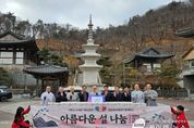 (케이엠뉴스) 양주시 장흥면은 최근 한국불교태고종 청련사에서 구세군과 한국불교태고종, 태고복지재단과 함께 ‘2026년 아름다운 설 나눔 키트 전달식’을 개최했다. 이번 행사는 설 명절을 앞두고 지역 내 저소득 취약계층 주민들이 따뜻하고 풍성한 명절을 보낼 수 있도록 이웃돕기 성품을 지원하기 위해 마련됐다. 이날 전달된 설 나눔 키트는 총 100박스로, 설 특선식품 6종과 간편 조리식품 4종, 후식류 5종 등으로 구성됐다. 키트는 관내 독거 어르신과 장애인, 한부모 가정 등 저소득 취약계층 100가구에 전달될 예정이다. 전달식에는 구세군 한국군국 한세종 서기장관, 홍봉식 국장 등 관계자 6명과 한국불교태고종 총무원장이자 청련사 회주인 상진스님, 재경부장 효능스님, 사회부장 법연스님, 홍보부장 법진스님, 사서실장 도휘스님과 청련사 대중스님, 나태인 장흥면장 등 15여 명이 참석했다. 참석자들은 직접 키트를 포장하는 봉사활동 및 전달식을 진행한 뒤, 장흥면 소재 저소득 취약가구 2곳을 방문해 물품을 전달하며 이웃사랑을 실천했다. 구세군 한국군국 한세종 서기장관은 “청련사와 함께 따뜻한 이웃사