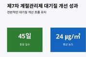 (케이엠뉴스) 경기도가 지난해 12월부터 올해 3월까지 ‘제7차 미세먼지 계절관리제’를 시행한 결과, 최근 3년간 초미세먼지 평균 농도가 24㎍/㎥ 유지되는 등 안정적인 대기질을 유지하고 있다고 9일 밝혔다. 2019년 12월~2020년 3월 처음 시작한 미세먼지 계절관리제는 고농도 미세먼지가 집중 발생하는 겨울부터 이른 봄철에 배출가스 5등급 차량 운행 제한, 공공부문 차량 2부제, 사업장 및 공사장 관리 강화 등 다양한 미세먼지 저감 대책을 추진하는 것이다. 경기도 보건환경연구원 분석에 따르면 지난해 12월부터 올해 3월 도내 초미세먼지 평균 농도는 24㎍/㎥를 기록했다. 2022년 12월~2023년 3월 28㎍/㎥에서 다음 연도에 24㎍/㎥로 하락했고 올해도 동일한 수준을 유지하고 있다. 특히 호흡기 건강에 직결되는 초미세먼지 ‘좋음’(15㎍/㎥ 이하) 등급 일수는 제도 시행 전인 2018년 12월~2020년 3월 동안 단 11일에 불과했으나 지난해 12월~올해 3월에는 45일로 4배 이상 증가했다. 월별 농도 추이를 살펴보면 지난해 12월 20㎍/㎥를 시작으로 올해 1월에는 전년 동월 대비