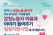 (케이엠뉴스) 평택시노사민정협의회는 지난 2월부터 평택고용복지플러스센터 직업상담사를 대상으로 총 4회에 걸쳐 ‘감정노동 종사자 마음과 이야기 들어주기’심리상담 프로그램을 운영했다. 이번 프로그램은 감정노동에 종사하는 근로자들의 심리적 부담을 완화하고 건강한 노동환경을 조성하기 위해 마련됐으며, 감정노동 종사자 30여 명이 참여했다. 상담은 국제대학교 상담센터 소속 전문 심리상담사가 진행했다. 감정노동은 고객 응대 과정에서 자신의 감정을 조절하며 서비스를 제공해야 하는 업무 특성상 지속적인 스트레스와 심리적 부담에 노출되기 쉬운 만큼, 평택시노사민정협의회는 감정노동 종사자들의 심리적 안정을 지원하고자 이번 상담 프로그램을 운영했다. 평택시노사민정협의회는 올해 하반기에도 심리상담 지원을 지속적으로 추진할 계획이다.