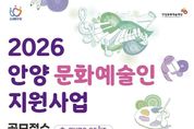 (케이엠뉴스) 안양문화예술재단은 지역 예술인의 창작활동을 지원하고 문화예술 진흥을 도모하기 위한 ‘2026년 안양 문화예술인 지원사업’ 희망자를 오는 16일 17시까지 공개 모집한다. 이번 공모는 안양에서 활동하는 예술인과 예술단체를 대상으로 하며, 안정적인 창작환경 조성과 더불어 경기도 내 우수 예술인의 안양 유입을 통해 시민들에게 보다 풍성한 문화예술 향유 기회를 제공하는 것을 목적으로 한다. 총 사업 규모는 3억 2,630만원이며, 이 중 지원금은 2억 7,400만원이다. 특히 올해는 ‘정산 간소화’ 제도를 시범 도입하여 예술인의 행정부담을 줄이고 창작활동에 더욱 집중할 수 있는 환경을 조성할 계획이다. 재단 관계자는 “이번 지원사업을 통해 지역 예술생태계가 활성화되고, 시민들의 문화향유 기회가 확대됨으로써, 안양이 보다 풍요로운 문화도시로 도약하길 기대한다”고 밝혔다.