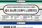 (케이엠뉴스) 과천시는 과천종합사회복지관이 오는 3월 21일 과천시민회관 소극장에서 개관 28주년을 기념한 오케스트라 연주회 ‘28번역 나눔행 클래식 급행열차’를 개최한다고 밝혔다. 이번 연주회는 시민들이 식료품을 1인 1개 이상 기부하면 입장할 수 있는 방식으로 진행된다. 공연을 통해 모아진 식료품은 지역 취약계층을 지원하는 ‘먹거리 그냥드림’ 사업에 활용될 예정이다. 공연에는 과천 지역 예술단체인 과천시뮤즈챔버오케스트라가 참여해 클래식 연주를 선보인다. 시민들은 공연을 관람하며 자연스럽게 나눔에 참여할 수 있다. 과천종합사회복지관 박찬정 관장은 “시민들이 공연을 즐기면서 자연스럽게 나눔에도 함께할 수 있는 자리가 되기를 바란다”라며 “앞으로도 지역사회와 함께하는 다양한 나눔 활동을 이어가겠다”라고 말했다. 신계용 과천시장은 이번 행사와 관련해 “과천종합사회복지관 개관 28주년을 축하드리며, 지역사회 복지 향상을 위해 노력해 주신 관계자 여러분께 감사드린다”라고 말했다. 한편, 과천종합사회복지관은 지역의 인적자원과 주민 참여를 바탕으로 문화와 나눔이 함께하는 프로그램을 꾸준히 운영하며