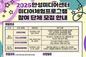 (케이엠뉴스) 안성미디어센터는 지역 어린이와 청소년이 미디어를 쉽고 재미있게 접할 수 있도록 ‘2026년 미디어체험프로그램’에 참여할 관내 어린이집, 유치원, 학교 등 단체를 모집한다고 밝혔다. 이번 프로그램은 아이들이 영상과 소리를 직접 다뤄보며 미디어의 원리를 이해하고 창의력과 표현력을 키울 수 있도록 기획된 체험형 교육이다. 영상·라디오 스튜디오를 활용해 진행되며, 공간·대상별 직업체험과 미디어 놀이 중심의 구성으로 어린이와 청소년이 즐겁게 참여할 수 있는 것이 특징이다. 2026년에는 ▲크로마키 체험(우주·세계여행 영상 촬영) ▲TV 뉴스 제작 체험 ▲뮤직 차트 방송 제작 ▲폴리(효과음) 체험 등 다양한 프로그램이 마련된다. 각 프로그램은 연령대에 맞춰 구성되며, 방송 직업 탐색과 실습 중심 활동을 통해 참여자의 흥미와 몰입도를 높인다. 모집 대상은 안성시 관내 6세 이상 어린이부터 초·중·고등학생이 포함된 어린이집, 유치원, 학교, 기관 등 단체로, 최소 10명에서 최대 30명 내외의 15개 팀을 선착순 모집한다. 체험비는 전액 무료이며, 프로그램은 오는 2월부터 5월까지 매주 수요일 오전에 운영된다.