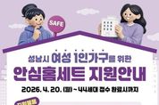 (케이엠뉴스) 성남시는 여성 1인 가구의 범죄예방과 안전한 주거생활을 위해 ‘안심 홈세트 3종’을 지원한다고 16일 밝혔다. 지원 품목은 스마트 도어벨, 홈캠, 문열림 센서다. 대상은 성남시에 사는 여성 1인 가구 또는 한부모(모자, 부녀)가족이면서 전월세 보증금 3억원 이하의 다가구·다세대 주택 거주자다. 지원 물량은 44가구다. 시는 신청자의 자격요건 확인 뒤 대상 가구에 안심 홈세트를 선착순으로 지원한다. 희망자는 오는 4월 20일부터 성남시 홈페이지(시정소식→새소식) 또는 경기민원24 홈페이지(여성 1인가구 안심패키지 지원사업)를 통해 신청서와 임대차계약서 사본을 첨부해 보내면 된다. 시청 6층 여성가족과를 방문 접수하거나 담당자 이메일로 해당 서류를 보내도 된다. 성남지역 1인 가구 수는 3월 말 기준 전체 41만325가구의 39%인 16만661가구다. 이 중 여성 1인 가구는 48%인 7만7845가구다. 성남시는 2021년도부터 이 사업을 펴 지난해까지 5년간 576가구에 안심 홈세트를 지원했다.
