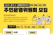 (케이엠뉴스) (재)광주시문화재단은 광주시 생활문화센터(만선·광남·고산·신현)에서 2026년에 활동할 주민운영위원회 위원을 통합 공개 모집한다고 밝혔다. 광주시문화재단은 2023년도 만선·광남 생활문화센터를 개관하고 주민운영위원회를 구성하고 운영해 왔다. 이번 모집은 작년 말 임기 만료와 개관으로 인하여 신규 모집이 필요한 광남·고산·신현 센터와 충원이 필요한 만선 센터가 함께 모집한다. 총 43명 구성을 계획하고 있으며, 광남·고산·신현 3개 센터는 각 12명, 만선 센터는 25년도 연임 위원을 제외한 7명을 충원한다. 참여 자격은 공고 모집일 기준 만 19세 이상으로 ▲ 관내 주민등록이 되어 있는 사람 ▲관내 소재 직장인 및 단체 종사자 중 하나에 해당하는 시민은 누구나 신청할 수 있다. 이전에 주민운영위원으로 활동했던 시민도 지원할 수 있으나, 신규 위원을 우선 모집한다. 선정된 위원은 2026년 2월부터 1년간 활동하며 1회 연임할 수 있다. 주민운영위원회는 생활문화센터의 지속 가능한 발전을 도모하기 위해 주민이 직접 생활문화 정책을 제안하고 실행하는 자치 대표기구이다. ‘우리 동네 문화를 주민 스스로