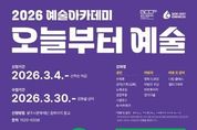 (케이엠뉴스) (재)광주시문화재단은 광주시민의 문화향유 기회 확대와 예술 감수성 향상을 위해 2026년 예술아카데미 '오늘부터 예술' 수강생을 모집한다. 2026 예술아카데미는 성인 · 어린이 · 시니어 등 다양한 연령층의 수요를 반영 전통예술과 생활예술 디지털 창작을 아우르는 프로그램으로 구성했다. 특히 어린이 강좌는 가족 단위 참여 확대를 위해 ‘따로, 또 같이’ 운영 방식을 강화하여, 아이와 보호자가 함께 방문하여 각자 다른 공간에서 개별 수업을 수강할 수 있도록 운영한다.(※ 보호자 강좌는 수강료 없이 무료로 운영) 성인 강좌는 △수묵화(동양을 담아내는 수묵화) △성악(천상의 목소리, 성악) △궁중무용(전통의 아름다움 궁중무용) △노래교실(함께 부르는 노래교실) △스윙댄스(가볍게 한 스탭, 스윙댄스) △AI(AI 아트워크) 등으로 운영될 예정이다. 어린이 강좌는 △어린이 코딩(우리는 코딩예술가) △창의미술(미술로 마음껏) △명화 드로잉(작은 화가의 명화드로잉) △비트메이커 등으로 운영될 예정이다. 광주시문화재단 오세영 대표는 “예술아카데미 '오늘부터 예술'은 시민이 일상 속에서