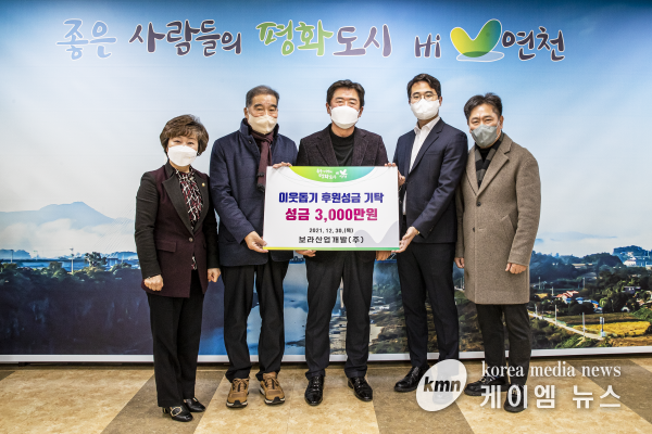 (케이엠뉴스) 보라산업개발은 관내 취약계층 어려운 이웃을 위한 사랑나눔 전달식에 장종남 회장, 장하연 대표, 안범기 사업본부장이 참석해 후원성금 3,000만원을 연천군에 기탁했다고 30일 밝혔다.