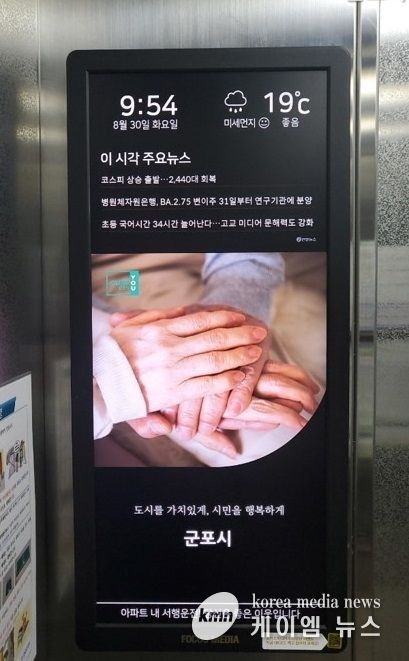 (케이엠뉴스) 군포시가 내년부터 공동주택 엘리베이터에 설치돼 있는 미디어보드를 통한 시정 홍보를 확대할 계획이라고 밝혔다.