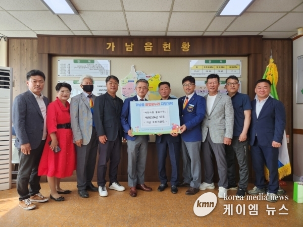 (케이엠뉴스) 지난 24일 국제로타리 3600지구 가남로타리클럽은 제29대 회장 취임을 기념하며 관내 어려운 이웃을 위해 230만원 상당의 백미 10kg 57포를 가남읍 행정복지센터에 기탁했다.