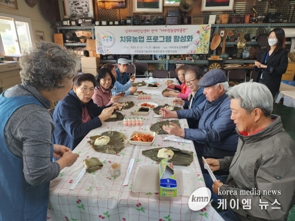 이번 농촌치유 프로그램은 남부치매안심센터 어르신 72명 대상으로 아리랑농업박물관에 방문해 도곡정원을 산책하고 옛농기구를 보며 추억을 회상하고 동물먹이주기 체험, 꽃차 만들기, 스카프 천연염색, 연잎밥 만들기 등 다양한 농촌치유 프로그램에 참여하는 방법으로 진행됐다.
