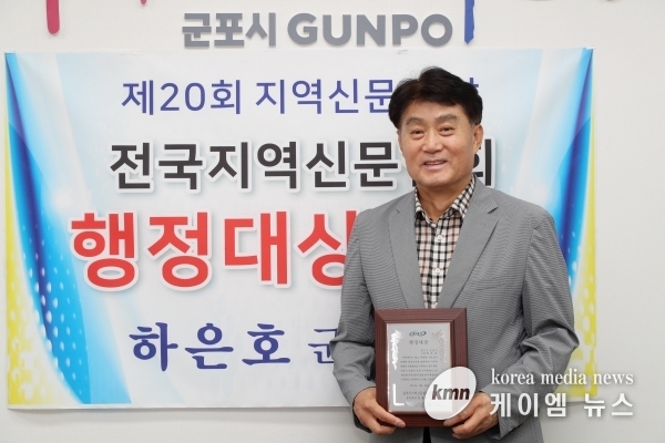 (케이엠뉴스) 하은호 군포시장이 전국지역신문협회 행정대상을 받았다.