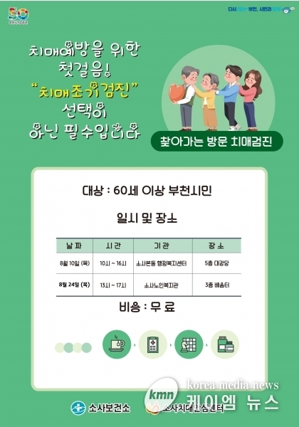 (케이엠뉴스) 부천시는 이달 10일부터 소사권역 ‘동별 치매 조기 검진 사업’을 운영한다고 밝혔다.