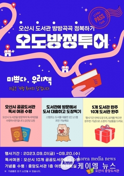 (케이엠뉴스) 오산시 중앙도서관이 9월 독서의 달을 맞아 9월 1일부터 20일까지 ‘오도방정 스탬프 투어’를 운영한다.