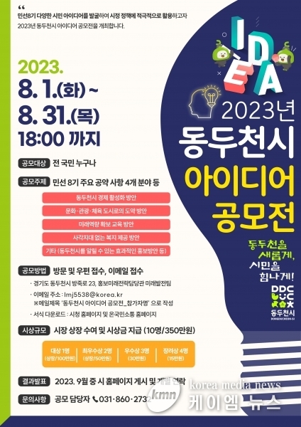 (케이엠뉴스) 동두천 시정발전의 밑거름이 될 ‘2023년 동두천시 아이디어 공모전’이 시민들의 뜨거운 열기 속에 최근 접수를 마감했다.