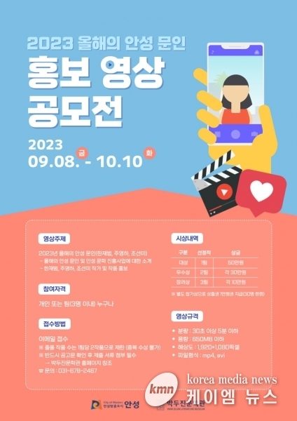 (케이엠뉴스) 안성시 박두진문학관은 9월 8일부터 10월 10일까지 ‘2023년 ‘올해의 안성 문인’ 홍보 영상 공모전’을 진행한다고 밝혔다.