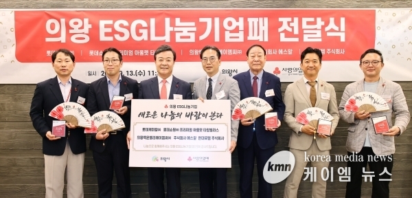 (케이엠뉴스) 의왕시는 13일 경기 사랑의열매 주최로 관내 ESG나눔경영에 앞장서는 기업에 ‘의왕 ESG나눔기업패’를 전달했다.