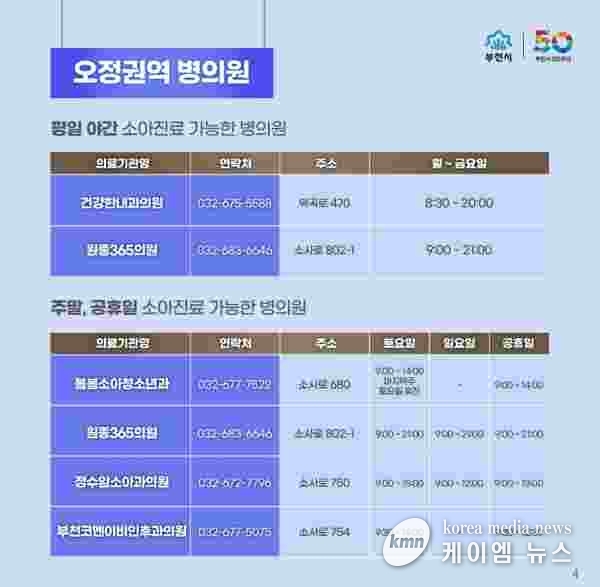 (케이엠뉴스) 부천시는 9월 25일 송내연합의원을 달빛어린이병원으로 지정했다고 밝혔다.